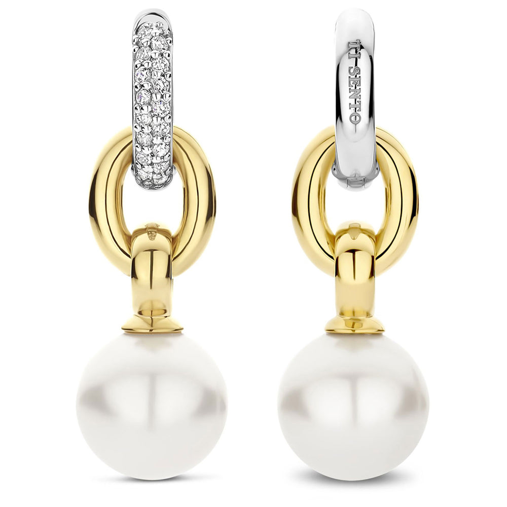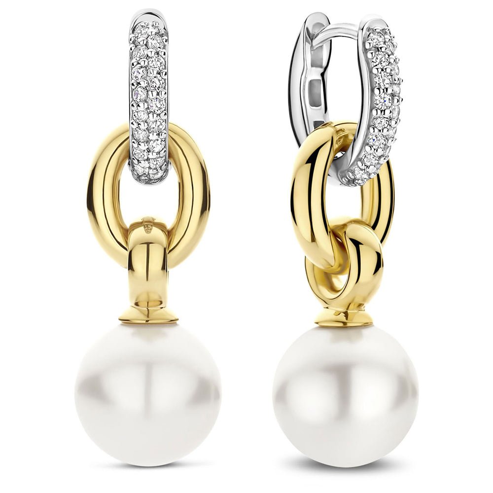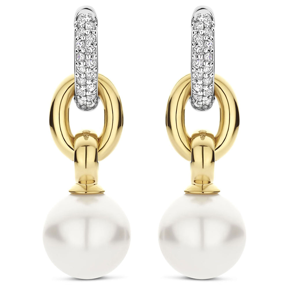 Nydelig perleørepynt i sølv og forgylt sølv pyntet med cubic zirkonia.