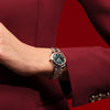 Visere og indekser i 18K Sedna™ Gold, detaljer i 18K Sedna™ Gold på kasse og lenke, gjennomsiktig baklokk.