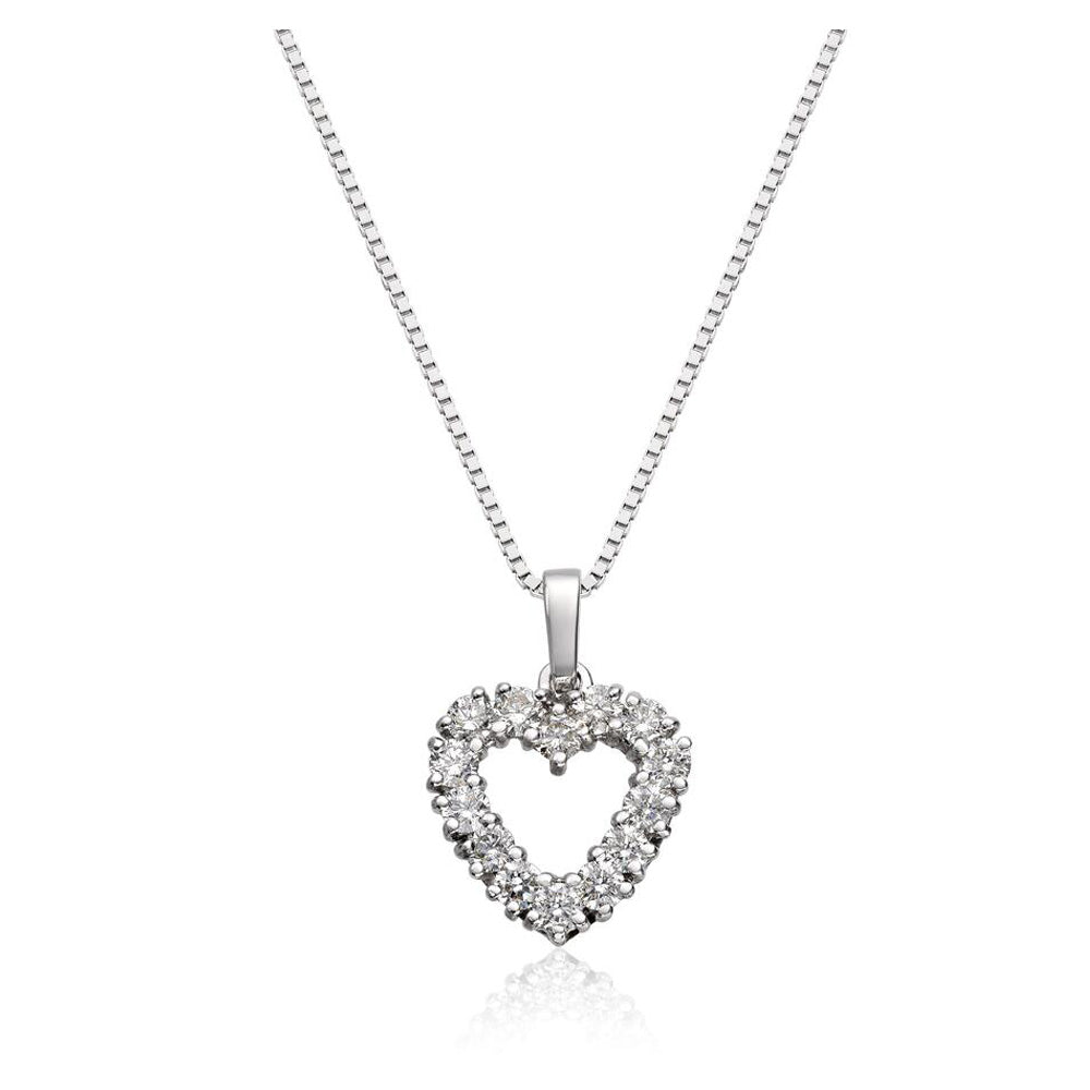 Nydelig hjerteformet anheng i 14 karat hvitt gull pyntet med 14 TWSI diamanter på totalt 1.0ct. Klassisk og nydelig.