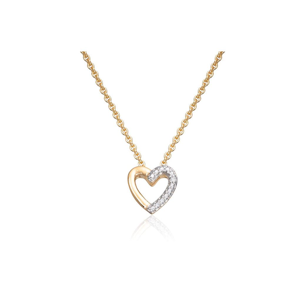 Nydelig hjerteformet anheng i 14 karat gult gull pyntet med 1 stk WSI diamant på 0.003ct.