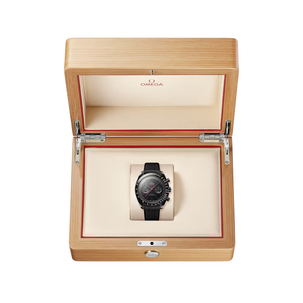 OMEGA har vært NASA sin trofaste kompanjong i verdensrommet siden den første måneferden. Dark Side of the Moon er en hyllest til romfarten og menneskets higen etter å utforske det ukjente. Med keramisk kasse og bezel er dette en knallsterk lettvekter, samtidig er Speedmasteren en av de viktigste og mest markante bautaene i klokkelandskapet.
