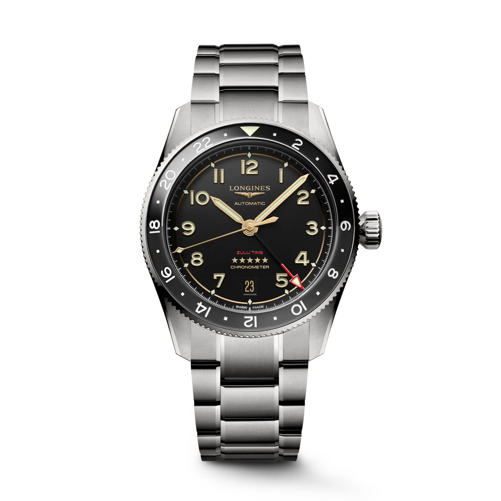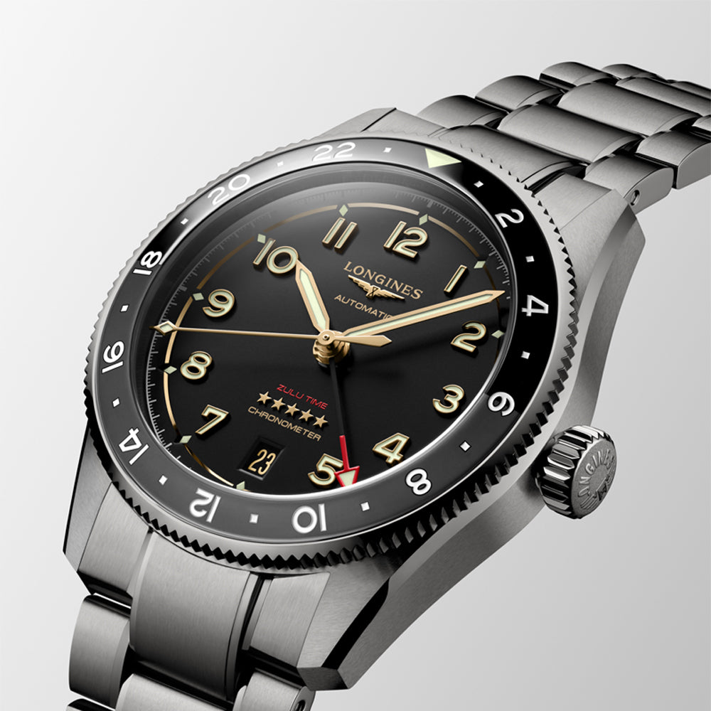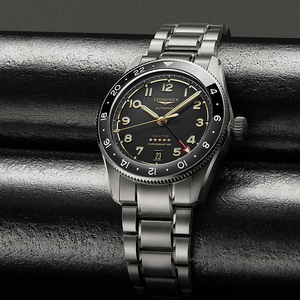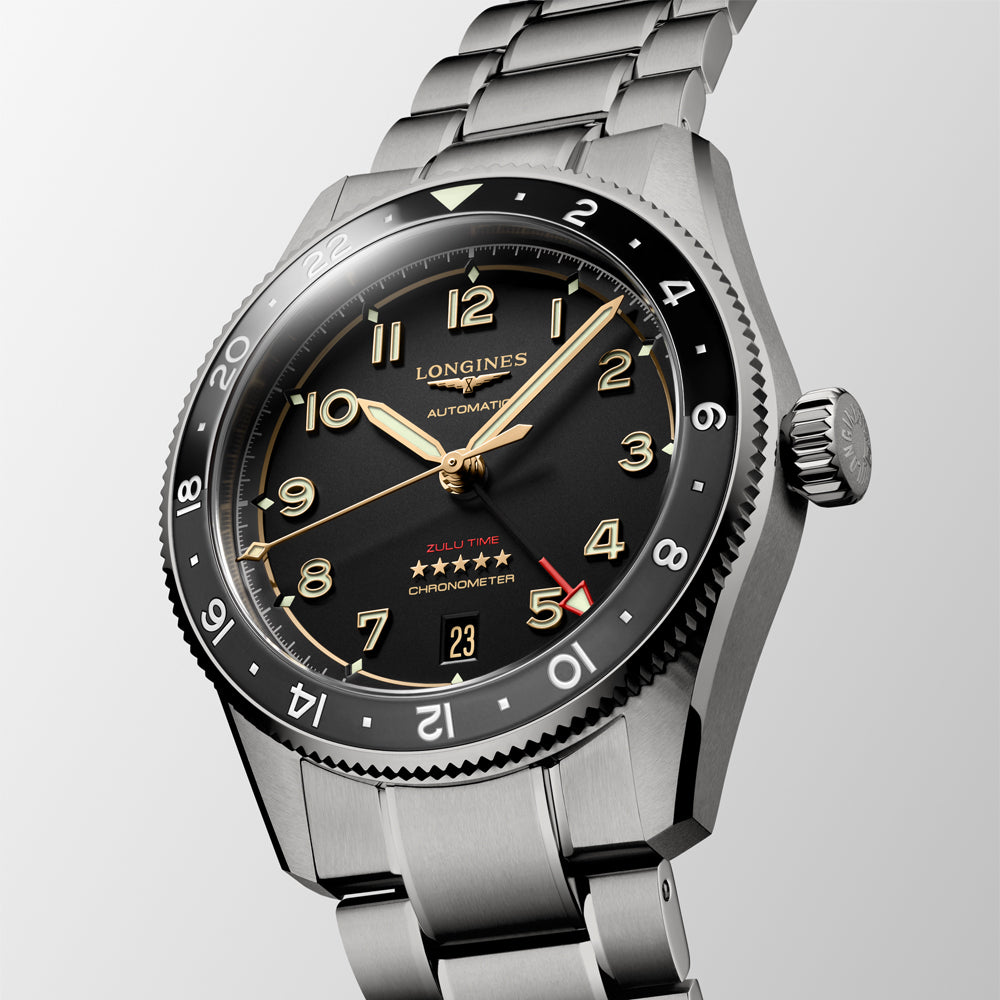 Longines Spirit Zulu Time er en ekte pilotklokke. Pilotklokker kjennetegnes ved sitt fokus på lesbarhet. Klare og tydelige tall og rene linjer. Zulu Time har i tillegg en ekstra timeviser som kan stilles uavhengig av klokken, slik at de viser to forskjellige tidssoner. Den keramiske bezelringen som omkranser skiven har egen 24-timers skala. Ved å dreie på bezelringen kan man sette opp en tredje tidssone. Urverket som sitter inni er eksklusivt for Longines. Det har 72 timers gangreserve, COSC-sertifisering og silisium balansefjær.